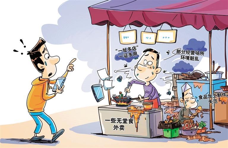 吃得津津有味的外卖,有可能出自一些卫生环境堪忧的无堂食小店。经营场所环境脏乱、食品加工制作失范、“一址多店”、一证多用……目前,仍有部分“幽灵”餐厅提供食物的场地达不到食品安全要求,存在食材可能受到污染、变质或过期等风险。无堂食外卖从业门槛低、点多面广,加上竞争激烈,食品加工过程大多“不对外”,对此,有必要强化监管,把好外卖“入口关”。一方面,进一步完善强制性规范或标准,确保经营场所符合相关法规要求,从源头杜绝“黑厨房”滋生。另一方面,加大无堂食外卖线上信息核对、线下执法检查力度;鼓励消费者、外卖骑手举报投诉,加大曝光力度,提高失信违法成本,让每份外卖都吃得安心、放心。