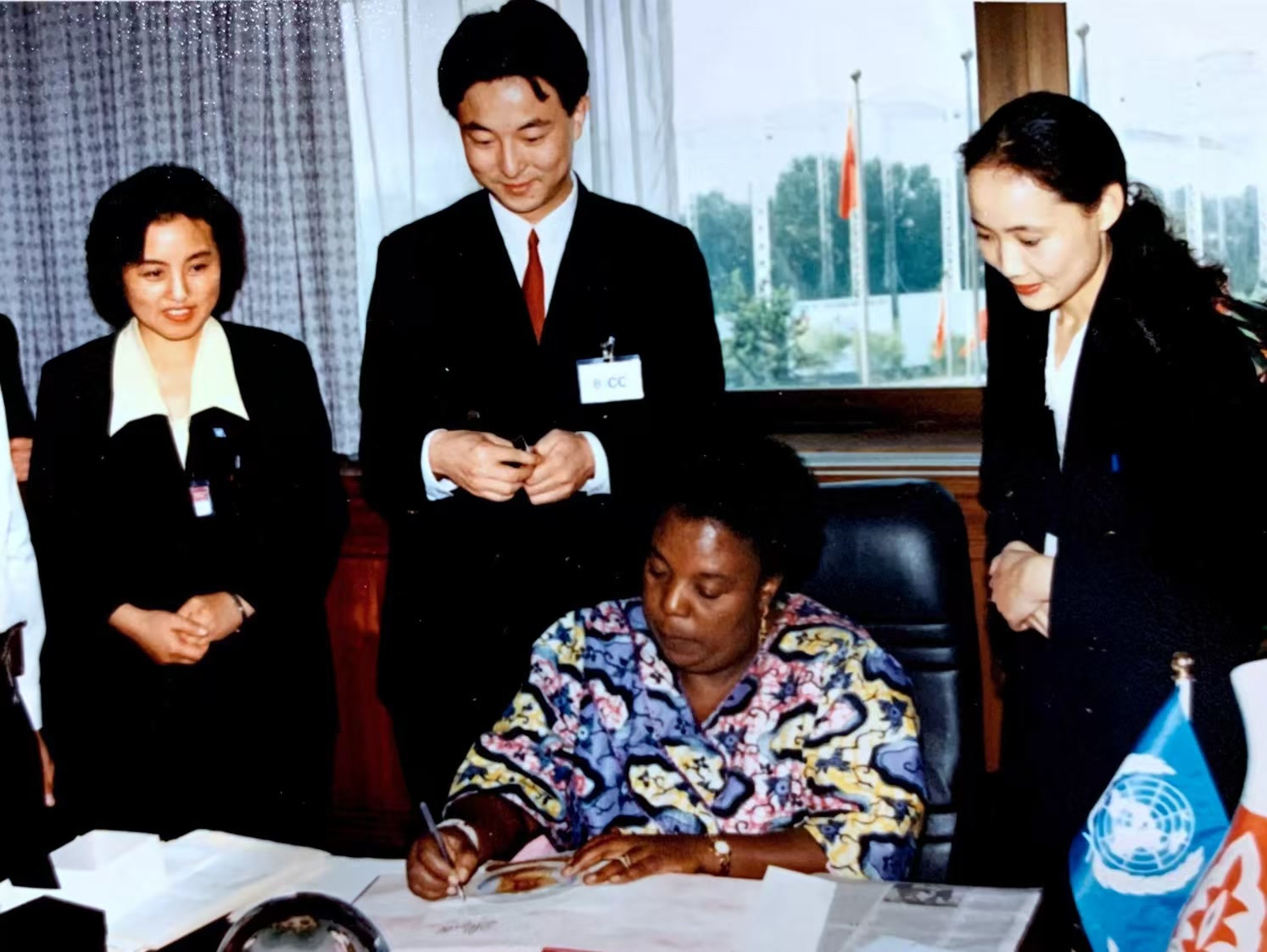 “这真是一个大的惊喜!”看到照片,蒙盖拉夫人十分激动。照片里,蒙盖拉夫人正签署服务项目书,彭军持笔站在她身后,面露微笑。她指着照片高兴地说:“这是30年前的我们。”紧接着,她又回忆起当时的场景,“北京那次大会办得很好,我印象很深刻。”