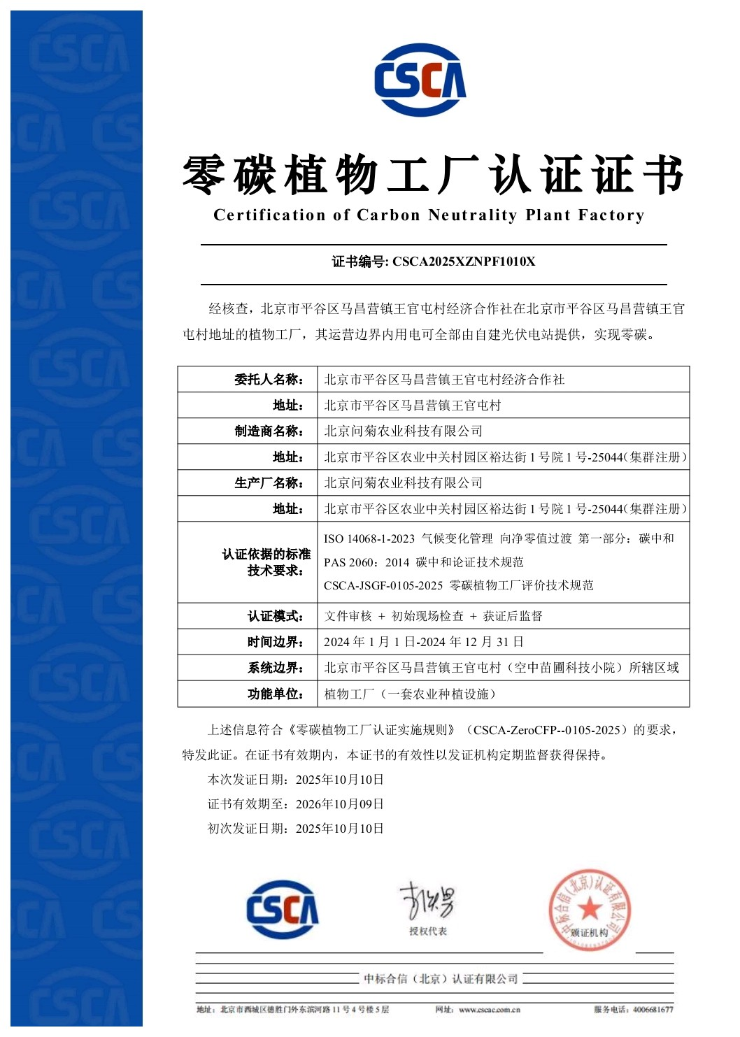 为了推动“科技小院”的科研成果实现快速转化,助力新产品顺利走向市场,近期,北京市标准化研究院、北京市食品检验研究院等多家单位与平谷区马昌营镇政府签订“关于农业中关村建设标准认证战略合作协议”,聚焦“空中苗圃”科技小院建设,通过发挥标准化、检验检测和认证的技术支撑作用,来破解“实验室成果多,市场应用少”难题。记者了解到,目前,“空中苗圃”科技小院已正式通过评审获得“零碳植物工厂”认证证书,率先对标“零碳”标准展开建设与运营。下一步,“零碳植物工厂”经验有望在马昌营镇率先推广,瞄准本地有机蔬菜产业生态链,用“零碳认证”为农产品贴上绿色标签。