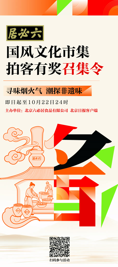从10月16日到10月19日,您可亲临西外文化休闲广场活动现场开展拍摄创作,在活动期间内,将您拍摄的精彩照片上传至北京日报客户端“京城拍客”栏目,并添加标签 #六必居国风市集# 。投稿截止时间10月22日24时,我们将根据作品在“京城拍客”平台的点赞量,评选出排名前30位的优秀作品。优胜拍客将获得由百年老字号六必居提供的精美礼品一份,让您的味蕾也能延续这份非遗酱香!
