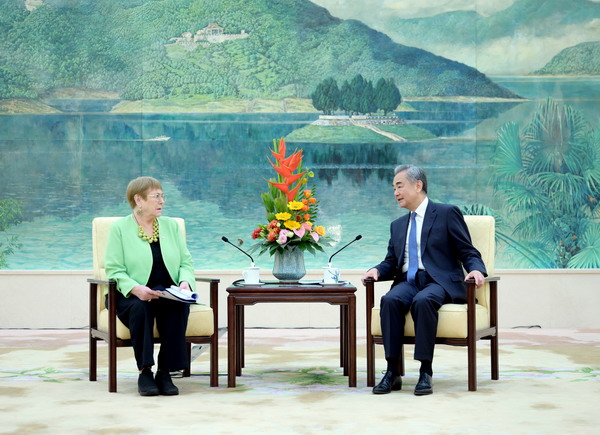 王毅表示,巴切莱特女士是世界知名政治家、也是中国人民的老朋友,担任智利总统期间推动中智建立全面战略伙伴关系,作为联合国妇女署首任执行主任为争取男女平等作出重要贡献,出任联合国人权高专期间主持公道,客观理性看待中国发展,推动双方平等友好交流,希望你继续为联合国事业及世界和平与稳定做出积极努力。
