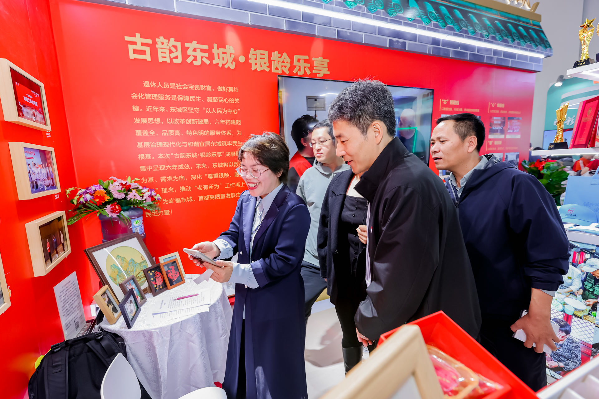此次成果展是北京市首次以“赛评展”模式呈现社会化退休人员服务提升成果的重要平台。东城区立足区域文化底蕴与服务优势,精心搭建特色展区,以“六‘XIN’服务矩阵”为核心脉络,通过展板图文、视频影像、VR互动、实物展柜等形式,生动呈现“芯”智建档的科技赋能、“心”级服务的文化浸润、“新”式驻点的贴心响应等服务亮点,让“文化赋能”点亮银龄生活的实践成果直观可感,充分彰显东城区将服务精准送到退休人员心坎里的扎实举措。