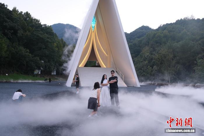 10月9日,游客在“深蓝计划·深蓝公园”内拍照打卡。曹丹 摄