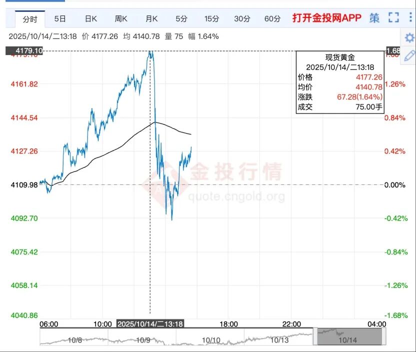 🔹10月14日国际现货黄金价格走势。(来源:金投网)