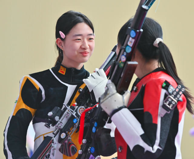 与盛李豪在巴黎奥运会上搭档夺得混合团体10米气步枪金牌的黄雨婷,也在同日收获个人生涯首枚全运会金牌——她与韩佳予、王子菲搭档组成的浙江队,在女子10米气步枪团体决赛与彭鑫露、管佳妮、刘汝璇组成的湖南队上演强强对话,最终在6次打平后,浙江队实力更胜一筹,惊险地夺得这枚金牌。值得一提的是,浙江队在前一比赛日的预赛中刷新该项目世界纪录。