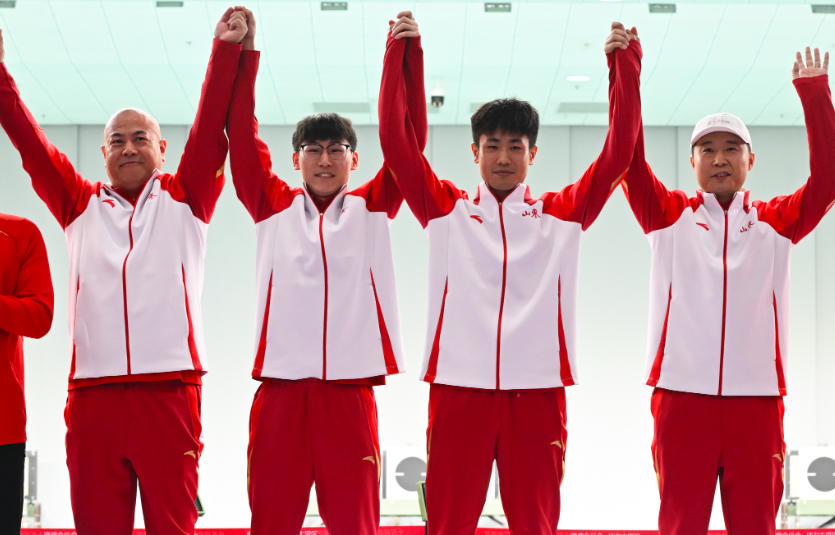 这一比赛日最受关注的无疑是男子10米气步枪比赛。盛李豪、张常鸿、刘宇坤、杨皓然四位奥运冠军同场竞技。预赛中,代表江苏队出战的盛李豪以634.5环排名第一,刘宇坤以0.1环之差位居第二,张常鸿排名第七,杨皓然无缘决赛。到了决赛,盛李豪展现出更胜一筹的实力与稳定性,在巴黎奥运会上赢下该项目和混合团体10米气步枪两枚金牌的他,以254.6环的成绩夺冠。吉林队小将王雨桐和巴黎奥运会三姿冠军刘宇坤分获银牌和铜牌。
