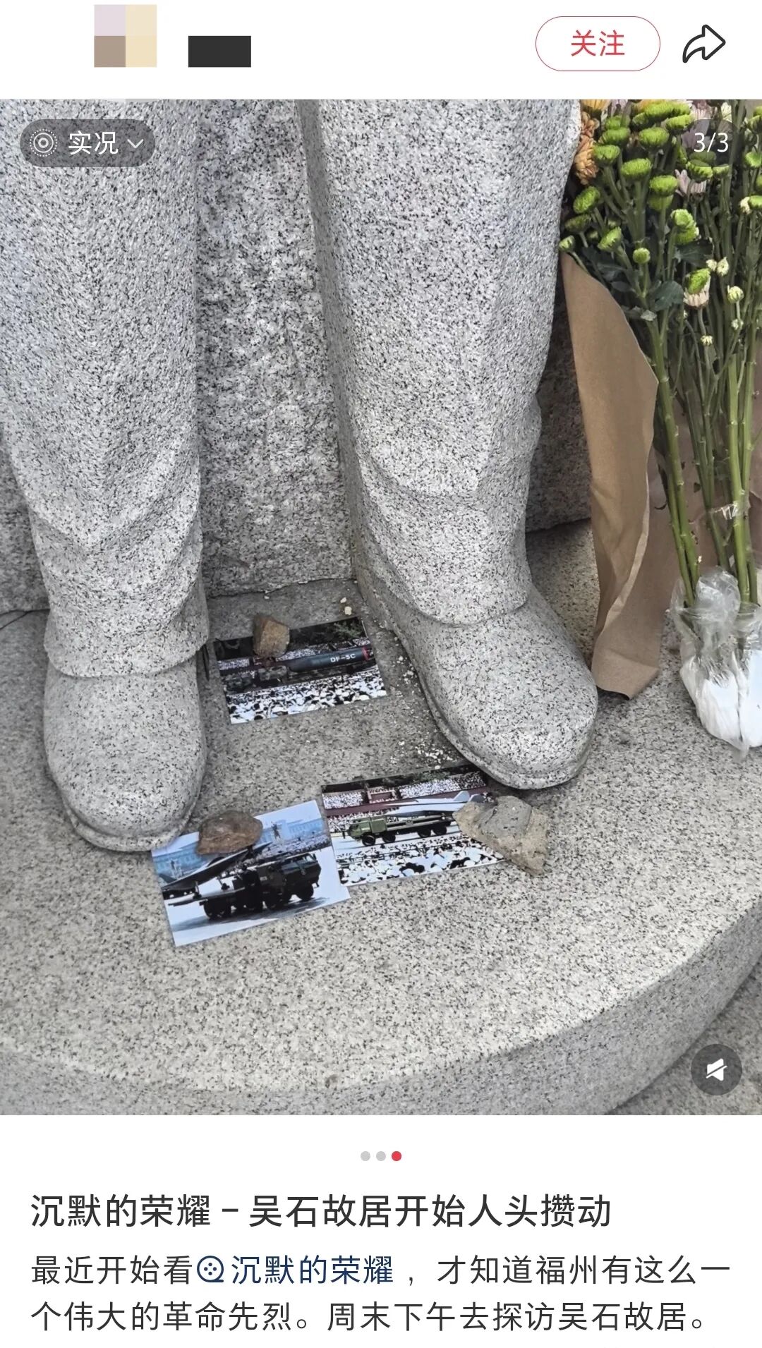 故居外人流如织,将军广场上鲜花簇拥,手写寄语“一缕清香祭英烈,万般崇敬寄哀思”令人动容。更有天南地北的游客专程赶来,只为在雕像前献上一束花、留下一张照片,完成一次跨越时空的致敬。吴石将军的雕像下,几张照片格外引人注目。那是阅兵中大国重器的雄姿——游客们想让英雄看看,这盛世已如他所愿。