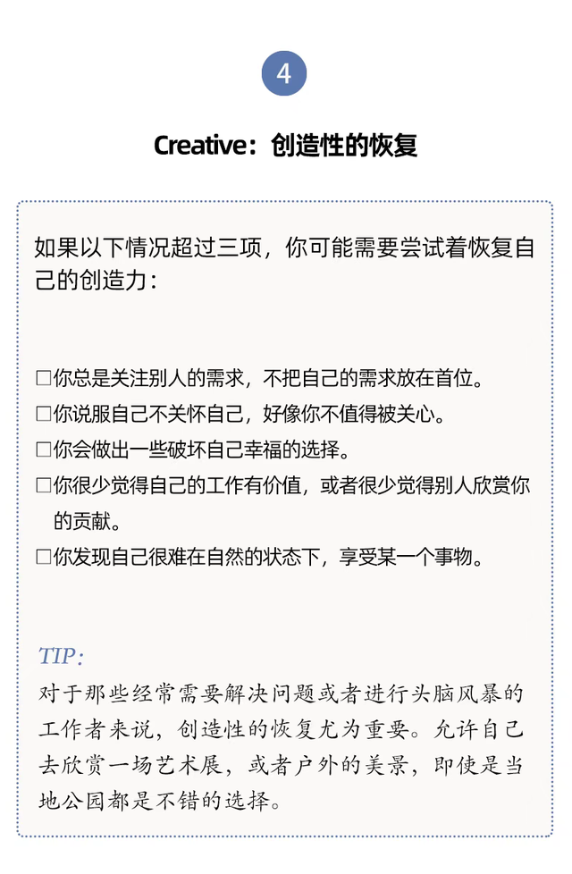 心理治疗师PantheaSaidipour认为,真正的休息,能够帮助你从吸收外部刺激转向调整自己的身体、思想和感受。