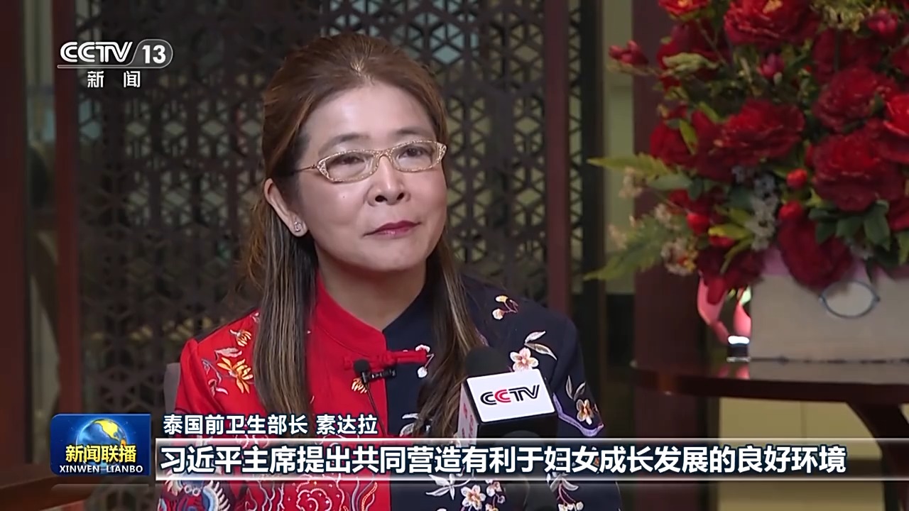 泰国前卫生部长 素达拉:习近平主席提出共同营造有利于妇女成长发展的良好环境,共同培育推动妇女事业高质量发展的强劲动能等4点建议,有重大意义,展现了远见卓识,为全球妇女事业高质量发展提供了指引。我非常支持习主席的建议。