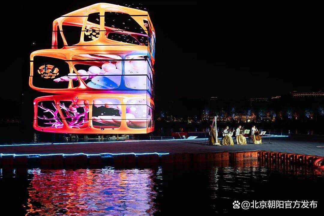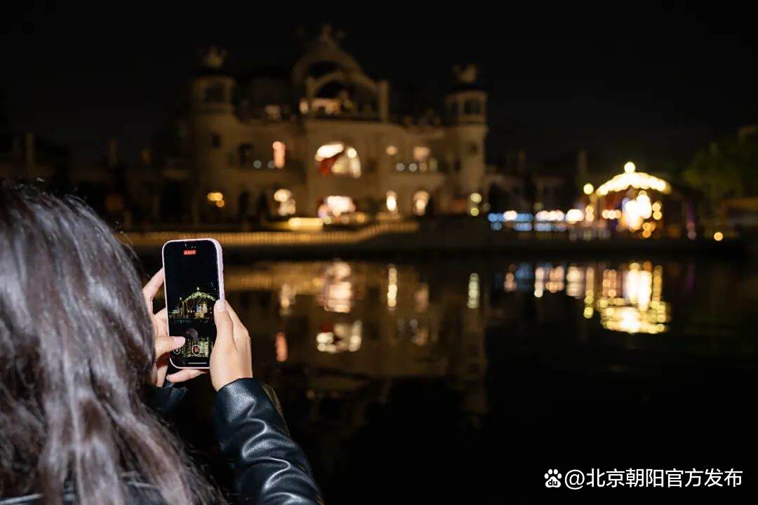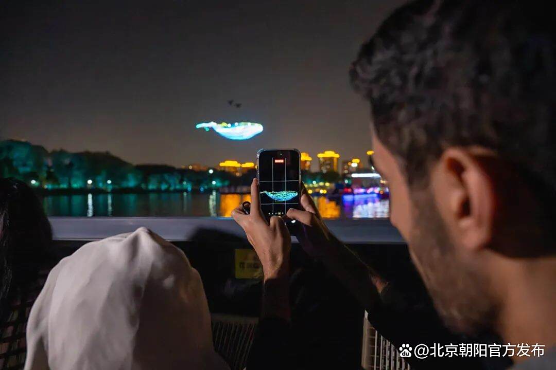 夜幕降临,大V们登上游船,泛舟亮马河。正在举办的2025北京朝阳国际灯光消费季,以光影为笔,在夜幕上绘就“不夜朝阳”的璀璨画卷。贝壳剧场外的湖面上,巨型“魔方”上光影变幻,十米长光影鲲鹏缓缓升起,LED百骏图踏水奔腾……如梦似幻的场景引来大V们阵阵惊呼。
