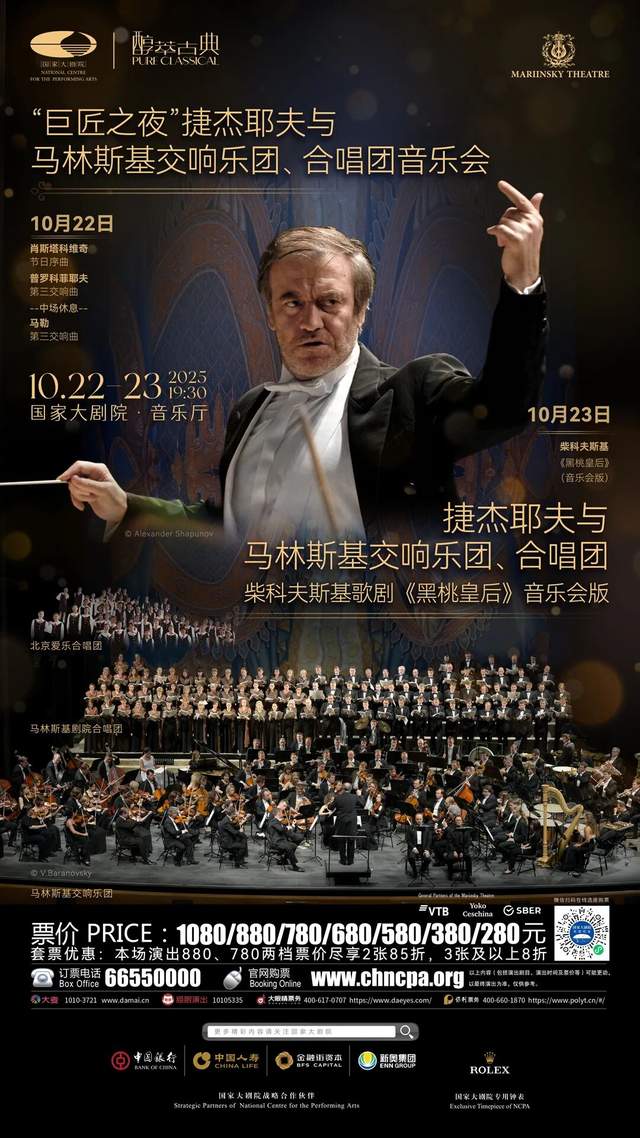 10月22日,捷杰耶夫与马林斯基交响乐团、合唱团将共同奏响“巨匠之夜”主题音乐会。音乐会将呈现肖斯塔科维奇充满节日欢庆气氛的《节日序曲》、普罗科菲耶夫《第三交响曲》以及编制庞大的马勒《第三交响曲》。三部作品代表了三位作曲家的艺术高峰,尤其是马勒《第三交响曲》需要庞大的乐队和合唱团,充分展现马林斯基乐团作为世界顶级乐团的实力与水准。本场音乐会中来自北京爱乐合唱团的少年歌者们也将登台亮相。23日晚,乐团将继续上演音乐会版柴科夫斯基歌剧《黑桃皇后》。这部歌剧是柴科夫斯基最成熟的作品之一,改编自普希金的短篇小说,讲述了一个关于爱情、贪婪与疯狂的故事。马林斯基剧院作为俄罗斯歌剧的权威演绎者,对该剧有着深入骨髓的理解,将为北京观众带来原汁原味的俄式歌剧体验。