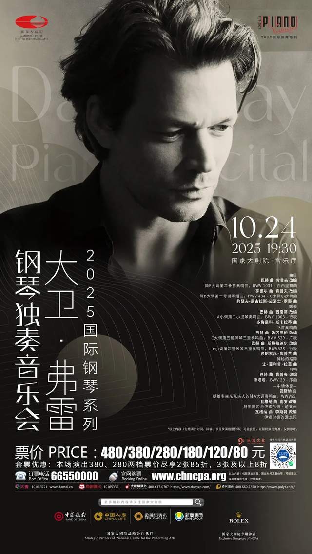 法国钢琴家大卫·弗雷是当今古典乐界炙手可热的钢琴演奏家,曾获OpusKlassik年度创新音乐会奖、德国 EchoKlassik年度器乐演奏家奖、鲁尔钢琴节青年才俊奖。被《BBC 音乐杂志》评为年度新艺术家、蒙特利尔国际音乐比赛二等奖和加拿大作品最佳诠释奖。他以细腻与充满诗意的弹奏赢得乐评家与乐迷的芳心。此次大卫·弗雷将带来一套全新作品,上半场是肯普夫改编的巴赫,斯卡拉蒂、拉莫等1680年代出生的作曲家的键盘乐作品;下半场是李斯特等改编的瓦格纳作品。