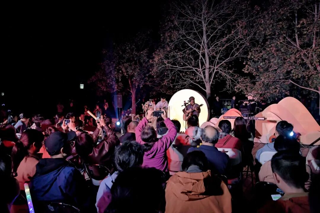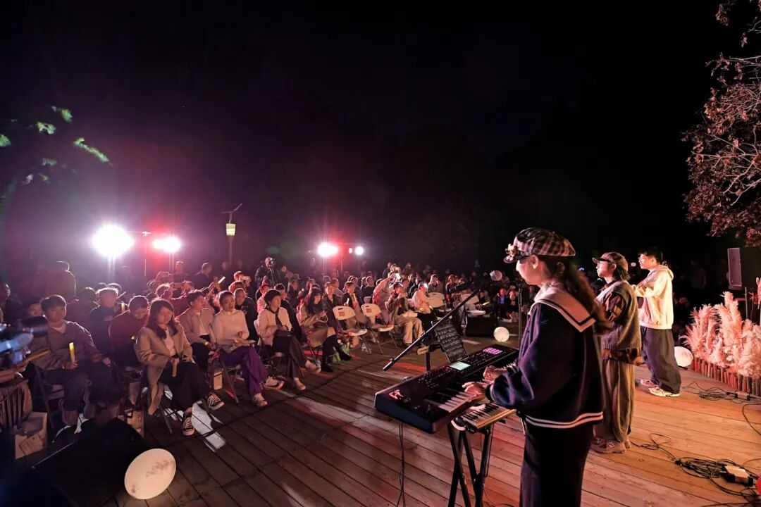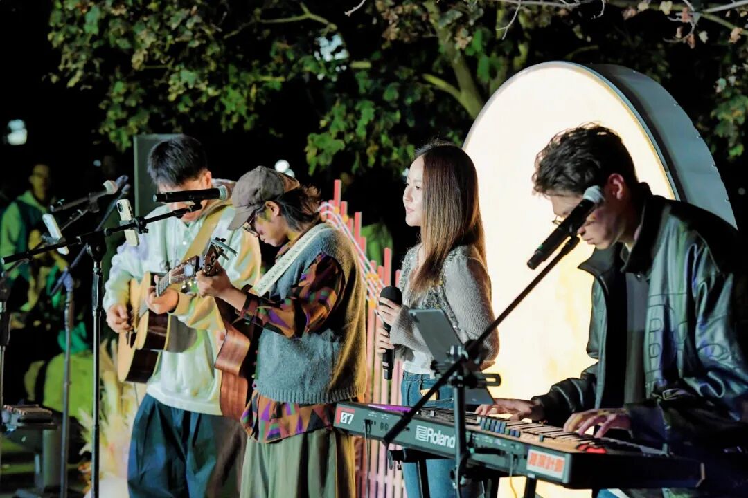 乐队还随机抽取“日落留言墙”上观众写下的歌曲现场演绎,被选中的观众能分享点歌故事、与歌手合唱。