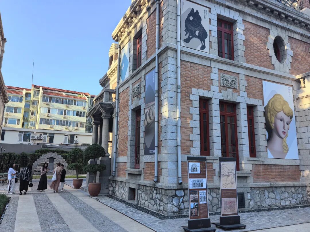 从朝阳门站H口出来,步行250米便抵达位于朝阳门内大街的“闻园81号”。步入园区,红砖砌成的老洋楼瞬间撞入眼帘,复古的长方形窗棂上爬着爬山虎,灰色地砖的缝隙里钻出嫩草芽,园中心的老树下,游客正坐在木椅上休息。这座百年法式宅邸,本身就是一件“会说话的艺术品”。