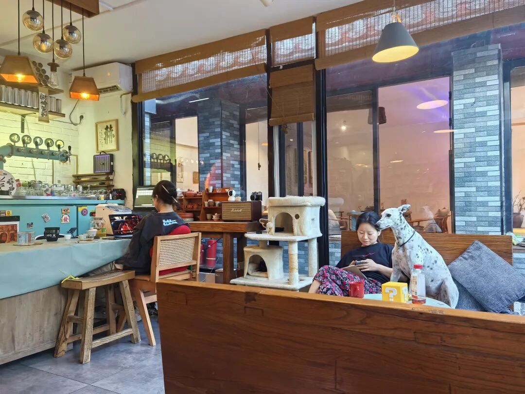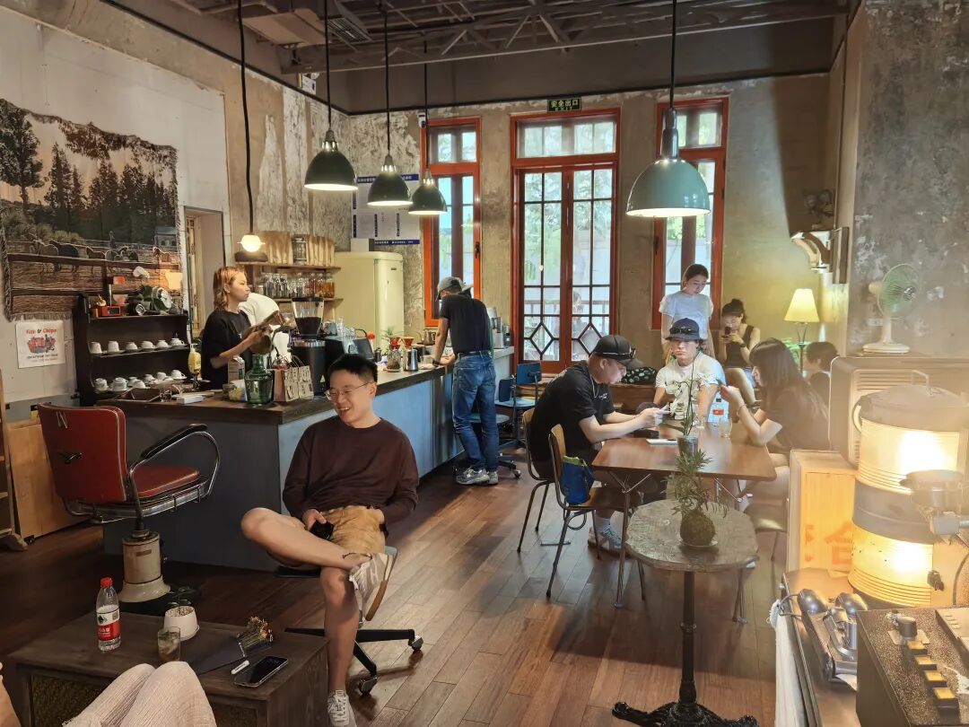 从木木美术馆的艺术氛围中缓过神,鼻尖被一缕醇厚的咖啡香牵引至一层的“GHOST”咖啡馆,这里藏着另一重浪漫。店内保留了建筑的原貌,墙壁上的斑驳清晰可见,手冲咖啡的香气飘满了整个屋子,店内昏黄的灯光与木质窗棂透进的暖光形成了一种法式浪漫的氛围感。靠窗的位置,一对情侣正挨着头一起挑选刚才看展的照片,阳光透过玻璃窗落在他们身上,连空气都慢了下来。