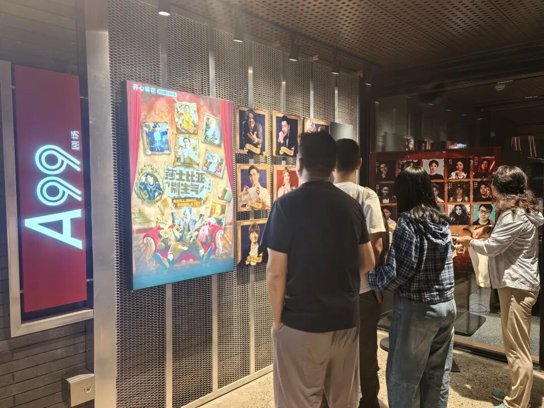 沿着街道步入隆福寺商街,不远处就可以看见“开心麻花A99剧场”的红色招牌。周六晚7点,剧场入口处已聚集了不少等待入场的观众。每周五、六、日晚7点半,让无数人捧腹大笑的开心麻花首部爆笑戏中戏《莎士比亚别生气》沉浸式话剧都会在这里上演。