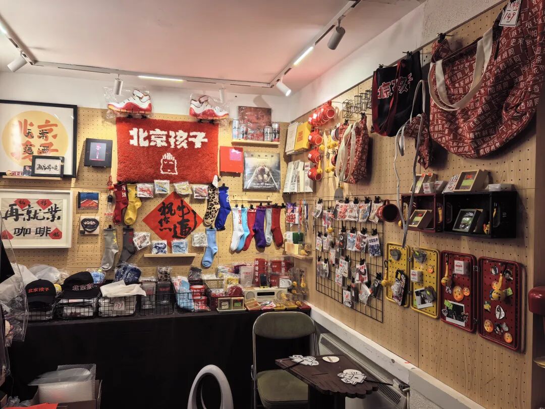 从南锣鼓巷站E口出来,避开主街的熙攘,钻进沙井胡同11号院的“北京孩子”小店,仿佛打开了时光胶囊。店内布置得像是“老北京的回忆匣子”:印着“北京孩子”的红色搪瓷杯,各种老北京胡同名字的帆布包,还有“边儿待着切”“麻利儿的”“没门儿”等北京话含量超标的徽章,透着浓浓的京味儿。