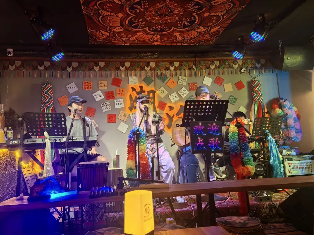 夜色渐浓,文艺的坐标指向鼓楼东大街90号的“潮汐民谣live”。走进店内,暖黄色的桌灯亮起,像点点星光,吉他手拨动琴弦,声音温柔的女主吟唱着关于回忆的民谣。点一杯精酿啤酒,三五好友围坐在一起,或是低声交谈,或是静静聆听。一曲终了,有人鼓掌,有人碰杯。“还记得大学时,我们在操场……”朋友的一句话,伴着吉他的扫弦,瞬间打开了回忆的闸门。