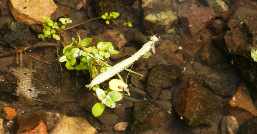 事情是这样的,如果你看到水流中,漂浮着一只不幸的螳螂尸体,大概像这样——