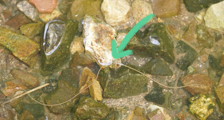 那么,你可以在附近找一找,看水中有没有一条疯狂扭动的“细铁线”,像这样——