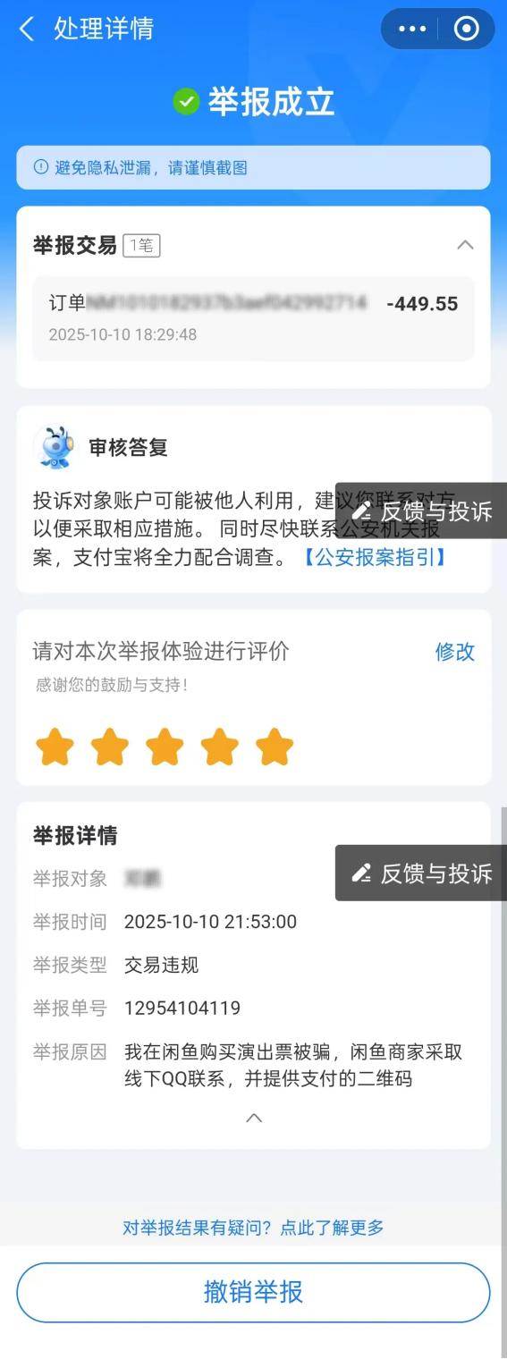 “视频里教过:先锁卡、再投诉、后报案,顺序不能乱。”姜先生第一时间致电银行冻结名下银行卡,随后联系支付宝、闲鱼等客服投诉涉事账号,退回资金,全程不到10分钟。冷静处理完后续,姜先生还主动向派出所报案,为警方提供线索。