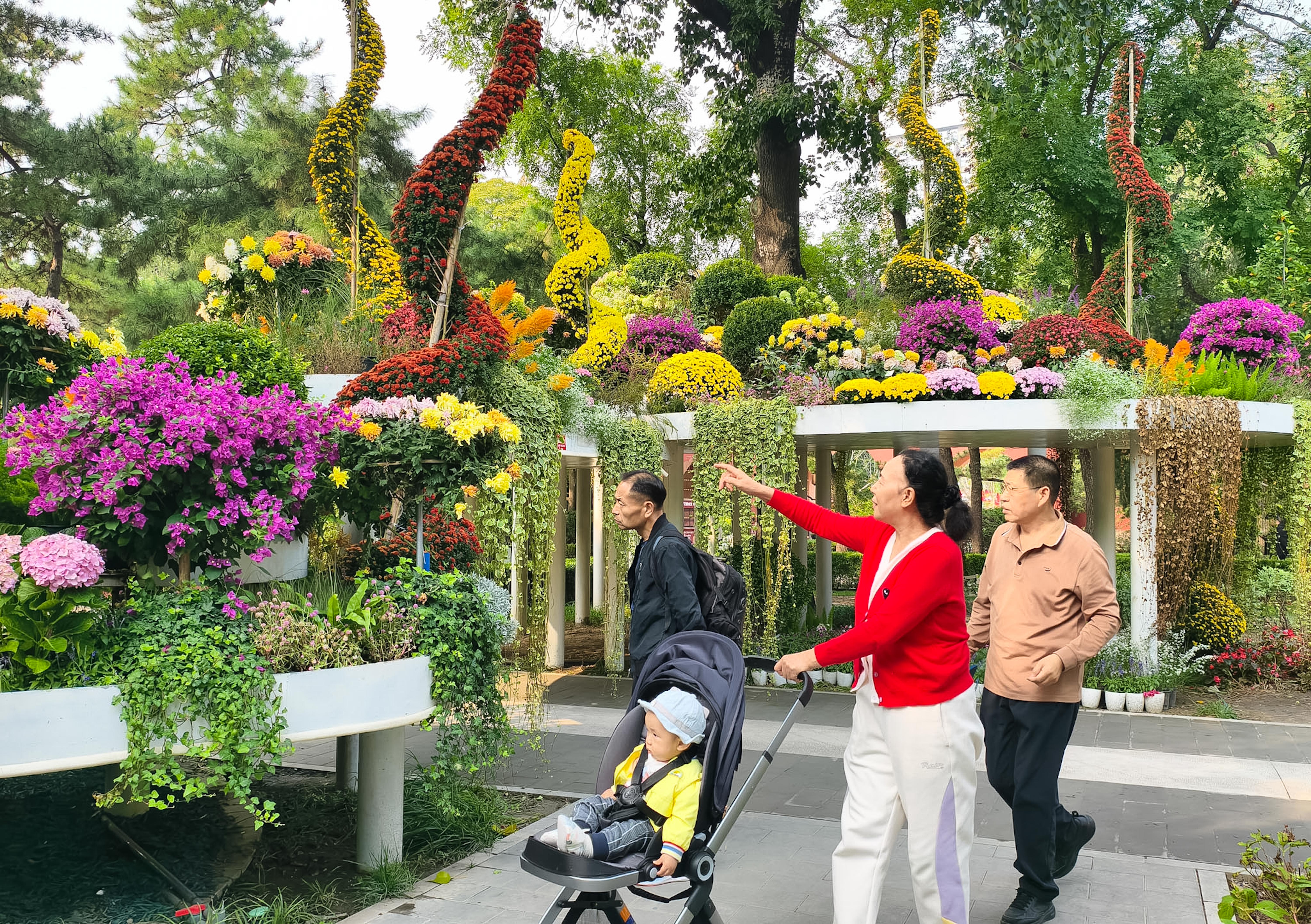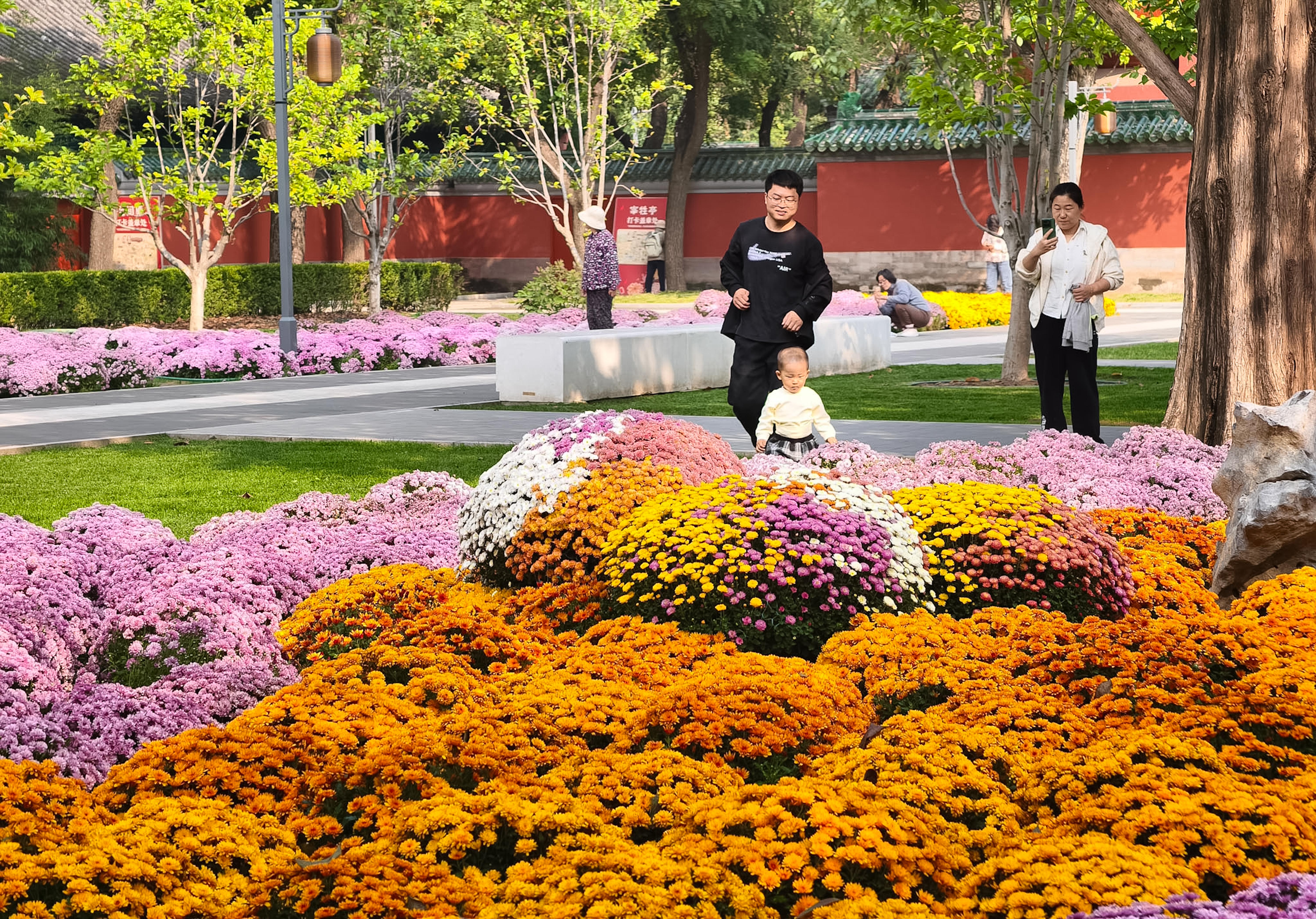 日坛公园菊花谷等多处菊花景观,各色菊花或傲然挺立或错落成趣,将秋日园林装点得色彩斑斓。