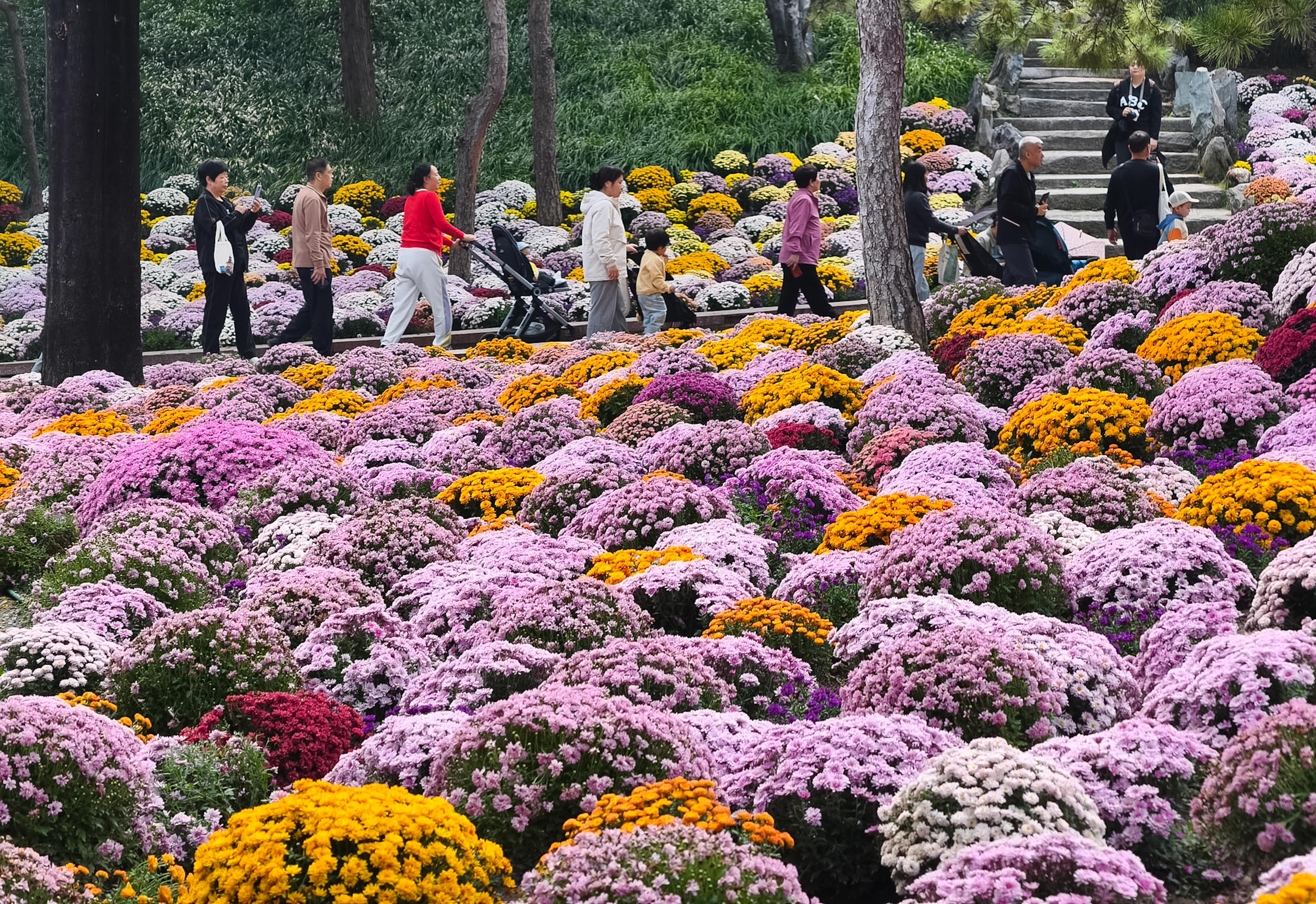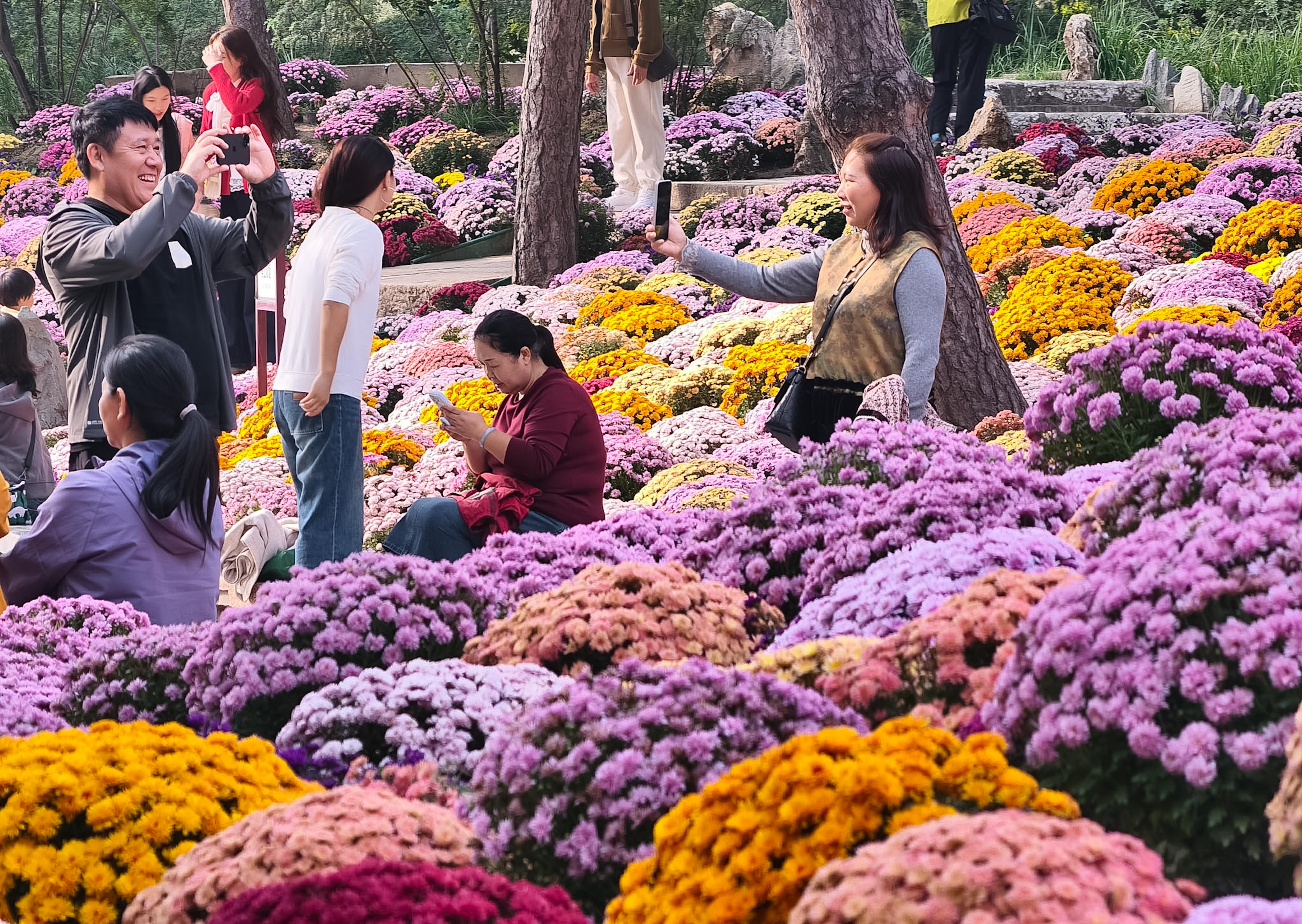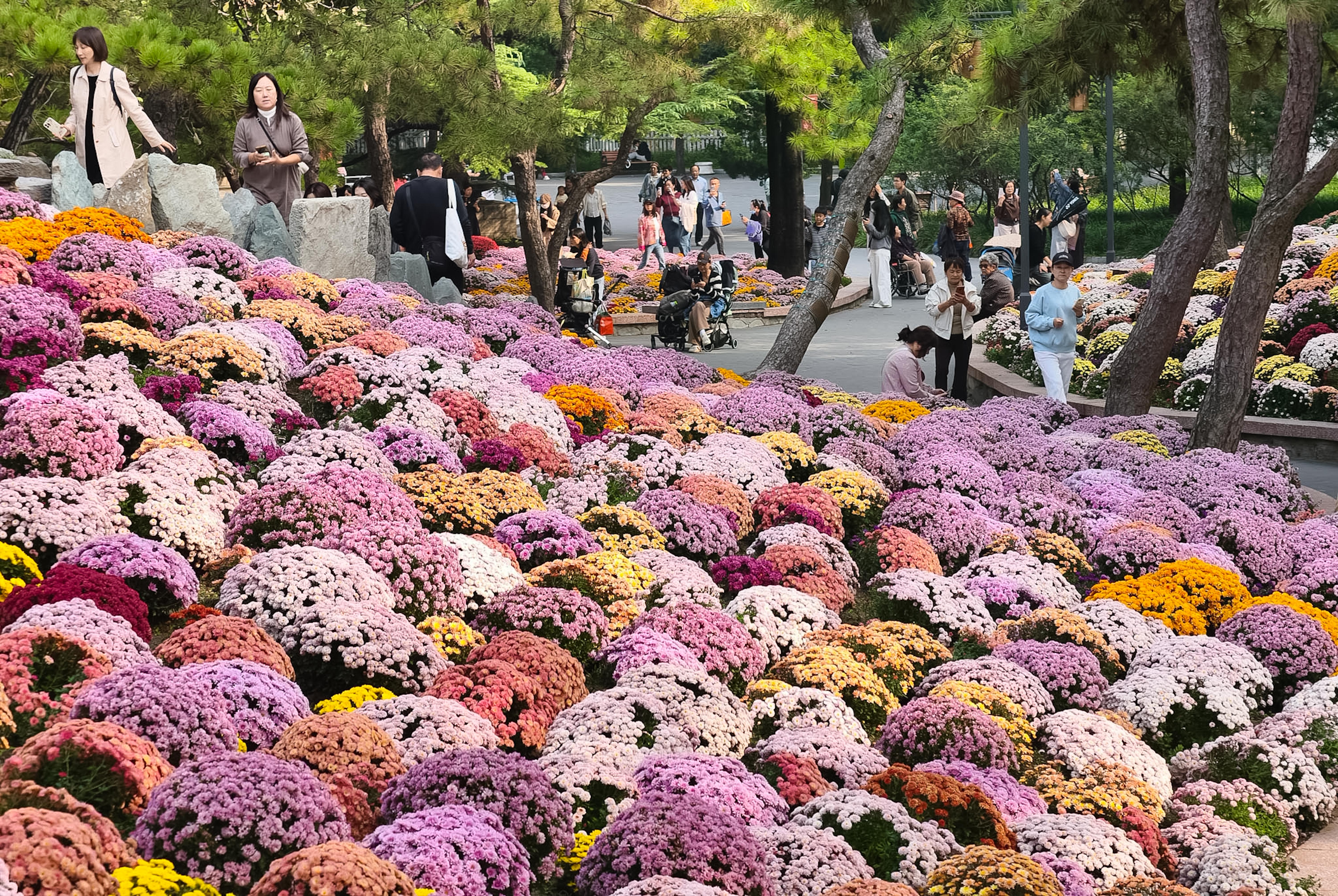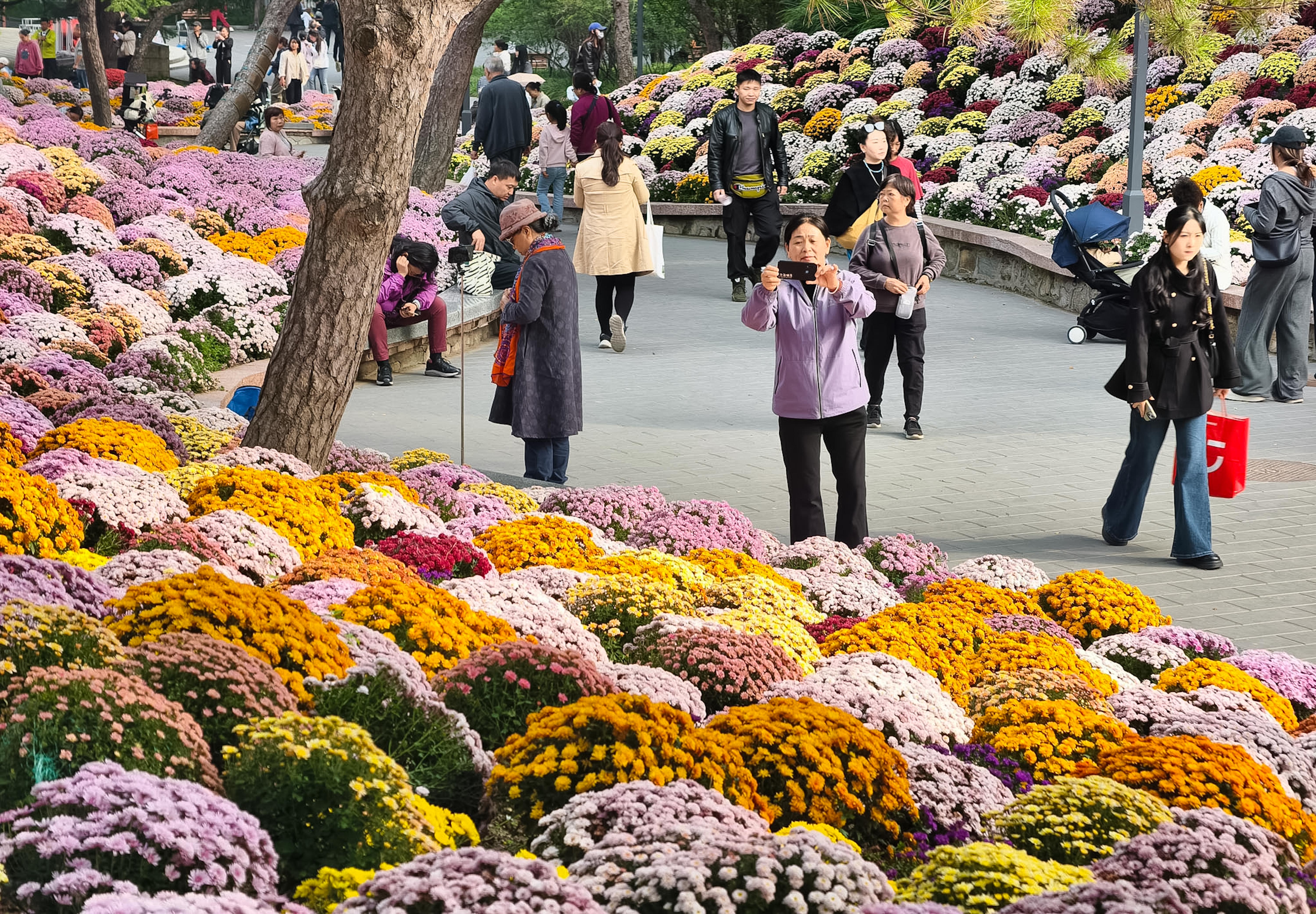 不少市民趁着晴好天气前来漫步赏菊,人们在花丛间驻足观赏、拍照打卡,尽情享受秋日限定美景。