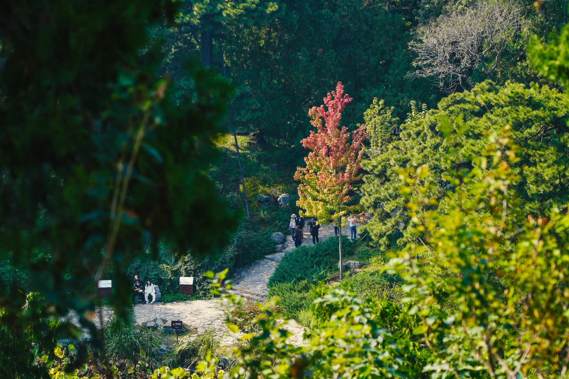 据香山公园红叶物候观测小组监测,目前全园红叶平均变色指数约5%,正是“秋风轻拂叶初黄,林间斑驳映斜阳”的时节。勤政殿、静翠湖等向阳之处,叶尖微微泛红,却未蔓延至叶脉深处,仿佛秋风的画笔正轻轻点染,赋予了秋日的生机与活力。