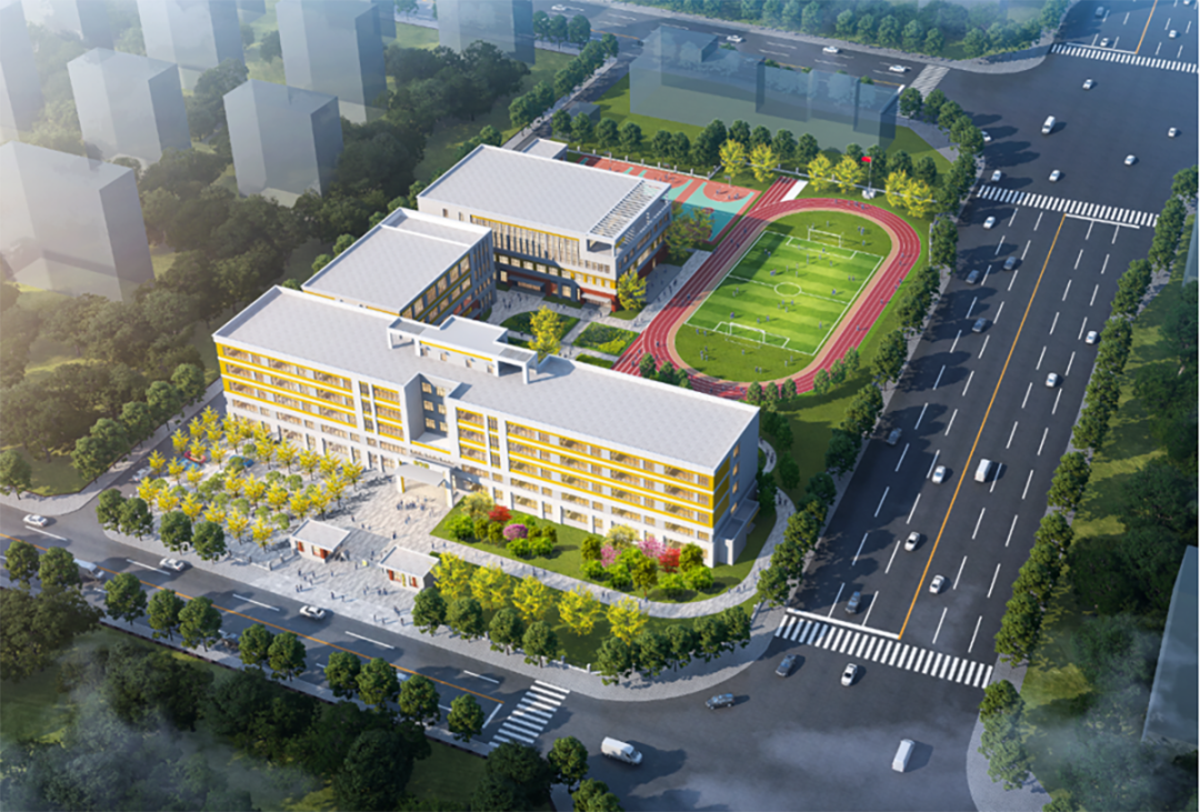 项目北至规划托幼用地,东至裕安路,南至花梨坎街(暂定名),西至22-02-007-2居住地块。项目包含教学主楼、室外看台及体育用房等,同时还将建设风雨操场、学生阅览室及各类专用教学用房,满足师生教学、活动需求。