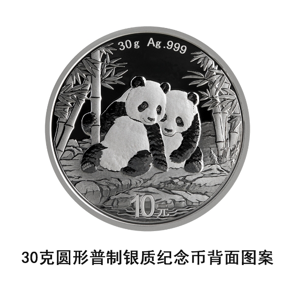 (六)30克圆形银质纪念币为普制币,含纯银30克,直径40毫米,面额10元,成色99.9%,最大发行量5000000枚。