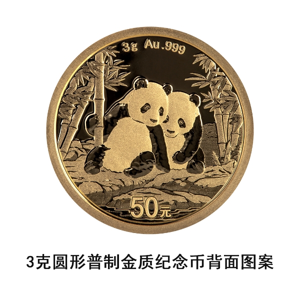 (四)3克圆形金质纪念币为普制币,含纯金3克,直径18毫米,面额50元,成色99.9%,最大发行量500000枚。