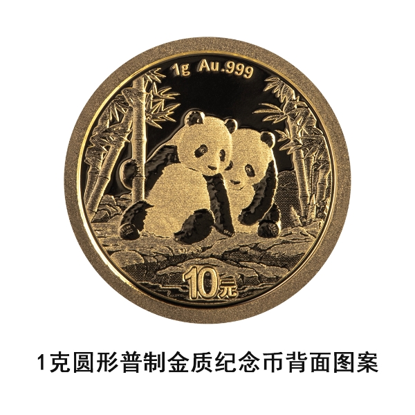 (五)1克圆形金质纪念币为普制币,含纯金1克,直径10毫米,面额10元,成色99.9%,最大发行量500000枚。