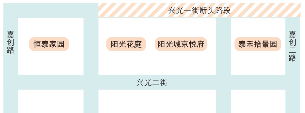 看着恒泰家园北侧新修的六车道宽阔大路,其他三个小区的居民羡慕的同时又很困惑。“人家的新小区刚建,道路就通车了,我们为什么等这么多年还不通?”“同样是兴光一街,为什么剩下东边这700多米不修了?”