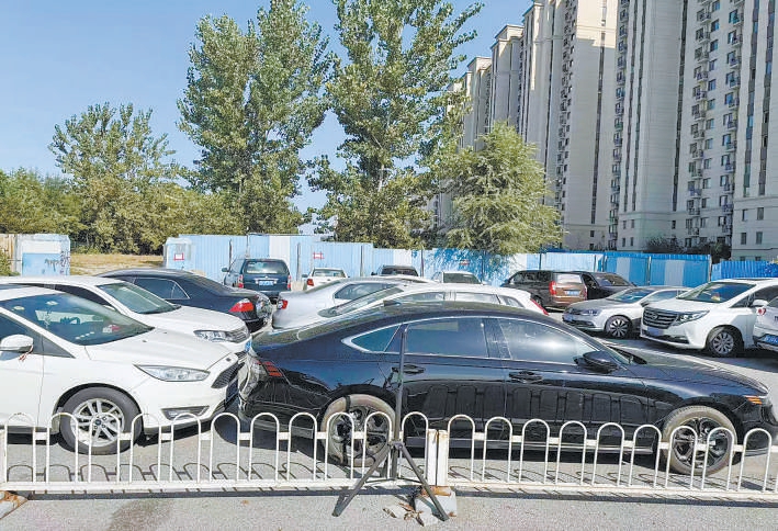 断头路成了停车场,横七竖八挤满车。