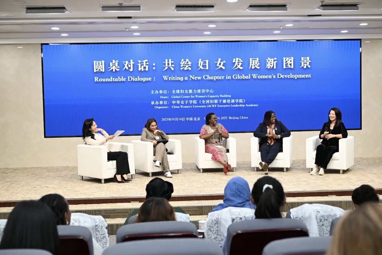 揭牌仪式后举办了以“共绘妇女发展新图景”为主题的圆桌对话,多国代表围绕全球妇女峰会“命运与共:加速妇女全面发展新进程”的主题和精神,探讨推动全球妇女发展的思路和做法。