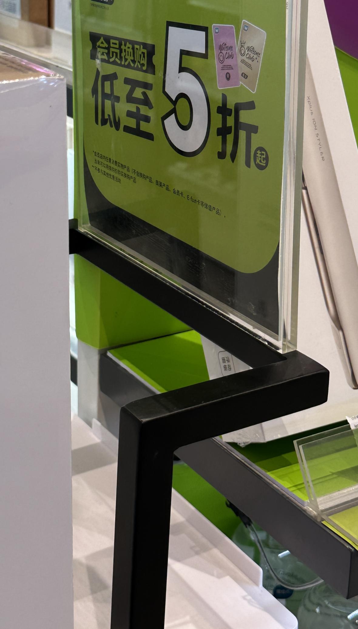 记者发现,这些解释性的小字,往往字号很小,有的还颜色暗淡,在五颜六色的闪耀广告牌之中,很不起眼,甚至还会被下方摆放的各种瓶瓶罐罐展示品挡住,更是让人难以发现。