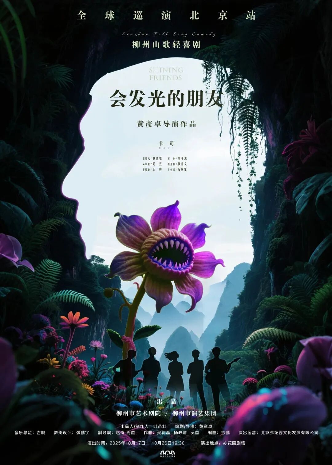 “唱山歌哎,这边唱来那边和……”这首穿越半世纪的经典旋律,即将在亦庄新城亦庄镇亦花园剧场被赋予全新的生命力。10月17日至26日,柳州山歌轻喜剧《会发光的朋友》将在此连演10场,以非遗山歌为底色,邀观众共赴一场关于友情、勇气与文化传承的“发光”之旅。这部作品由当代小剧场极具影响力的导演黄彦卓操刀,将刘三姐精神内核植入现代青年故事,让千年歌谣在电音、说唱与沉浸式互动中焕发新生。
