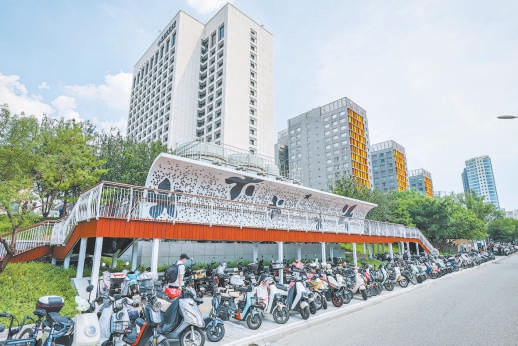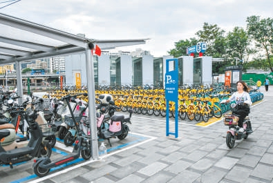 为破解停车难题,京投资产公司联合通州区属地管理部门主动拆除了原有非机动车停车场围栏,优化停车区域边界,释放更多可利用空间。“治理改造中,我们将原来地铁站外的非机动车停车场与附近的机动车停车场进行资源整合,将一部分机动车车位改为非机动车车位,重新规划停车流线与功能布局,实现不同交通方式之间的协调互补。”王辉介绍。