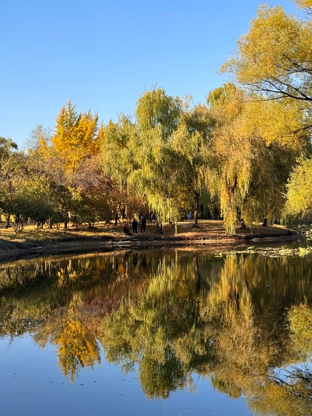 作为平房地区的“天然氧吧”,京城森林公园的秋天堪称色彩的盛宴。园内遍布几十种彩叶树种,10月中下旬起,枫叶渐红如霞,银杏铺就金毯,与深绿的针叶林层层叠叠交织成画。公园内湖边的芦苇也变得金黄,微凉的秋风吹过时,整片芦苇荡便活了起来,发出“沙沙——”的声响,宛如一片金色的海洋。拍摄时,可以巧用长椅当道具,坐在被彩叶环绕的林间长椅上,抬头望向树梢。摄影师蹲低拍摄,让金黄的银杏叶或火红的枫叶填满背景营造“沉浸式赏秋”的氛围。