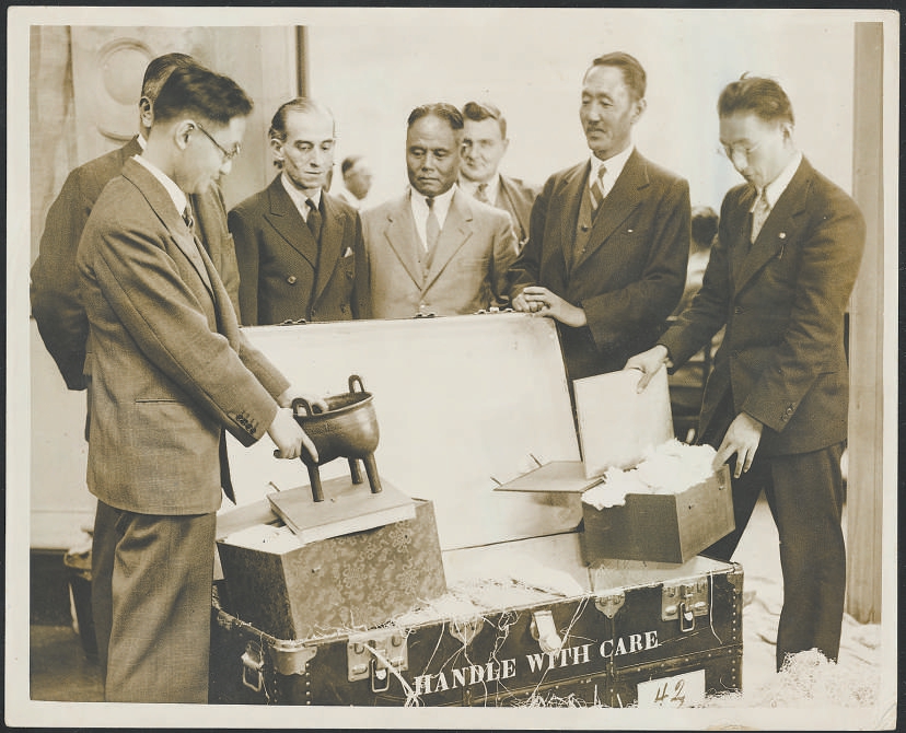 《北方回声报》记载:昨日,从未离开过中国的无价珍宝,秘密而近乎严苛地在皇家艺术学院开箱……四位中国博物馆专家先生,用他们那温柔而一丝不苟的手指,点交了100件珍宝……只有少数鉴定家允许参观开箱仪式,第一个开箱的文物包括近4000年的殷商青铜器。