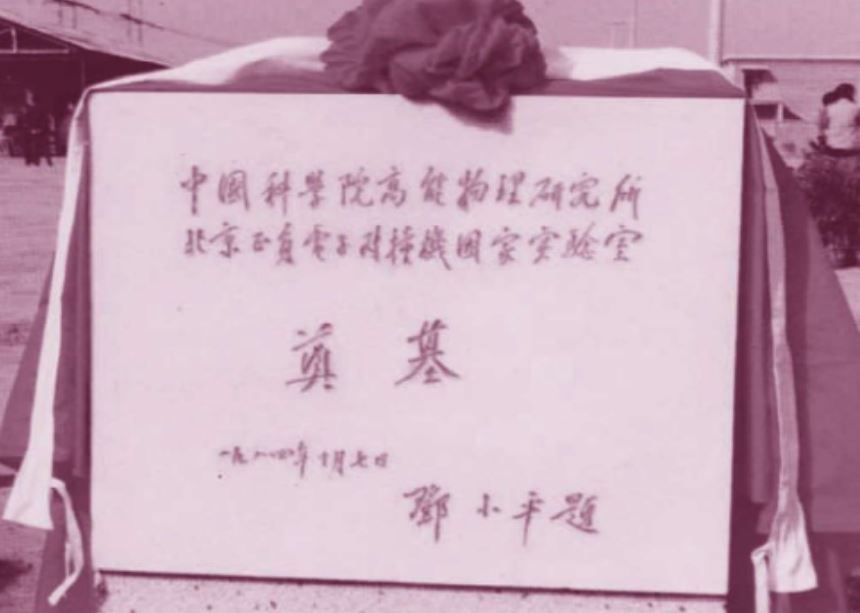 1984年10月7日,北京正负电子对撞机在中国科学院高能物理研究所开工建设,邓小平参加了奠基典礼。在中国科学院办公大楼的二层大厅,依然悬挂着邓小平为北京正负电子对撞机铲下第一锹土的巨幅照片。