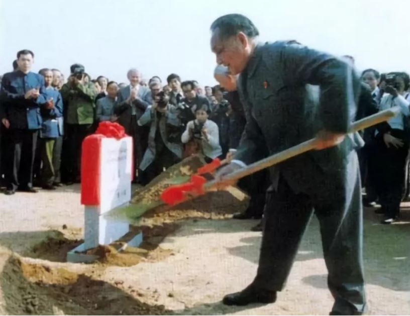 在奠基典礼前,邓小平听完工程建设的情况汇报,坚定地对周围人说:“我相信这件事情不会错!”