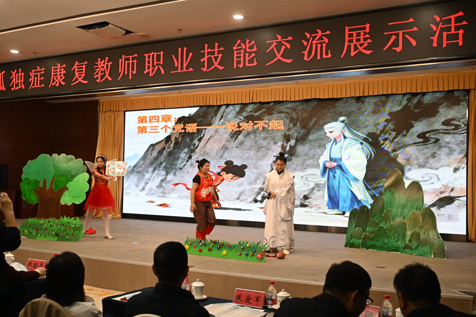 才艺技能展示则打破传统康复边界,鼓励教师将音乐、绘本剧、律动操等艺术形式转化为疗愈工具,展现“跨界融合”的康复思维,全方位彰显康复教师队伍多才多艺的职业素养。来自河北唐山的康复老师们带来儿童剧《哪吒的友谊魔法》,将“你好”“分享”“对不起”等疗愈关键词融入生动有趣的表演中;天津的3位康复老师表演《社恐but不烦恼》,舞台养眼又涨知识;来自北京海淀的老师们表演舞台情景剧《孤独或许不赖》,展示了“星星的孩子”、孩子家长和特教老师之间的对话,希望“星星的孩子”也能在星空下健康快乐成长。