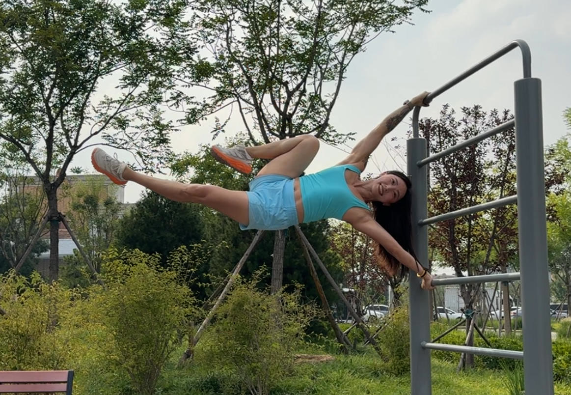 凭着不懈努力,单杠引体向上、双力臂、屈伸上、“人体旗帜”……这些在常人眼中高难度的动作,她都一一攻克。她还在多项健美赛事中,与专业选手同台竞技,获得了北京市健美比赛女子比基尼季军、健身全明星赛第一名等荣誉。