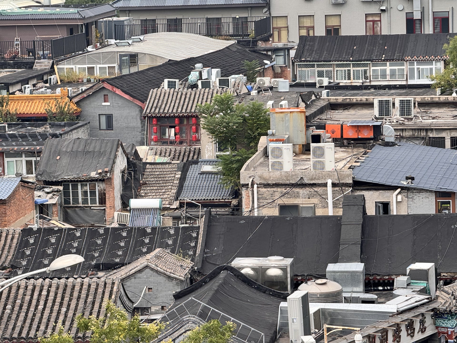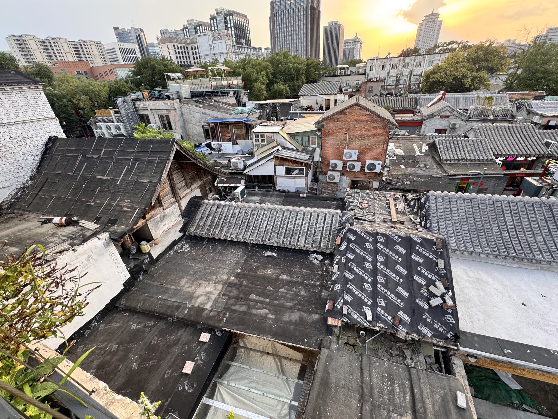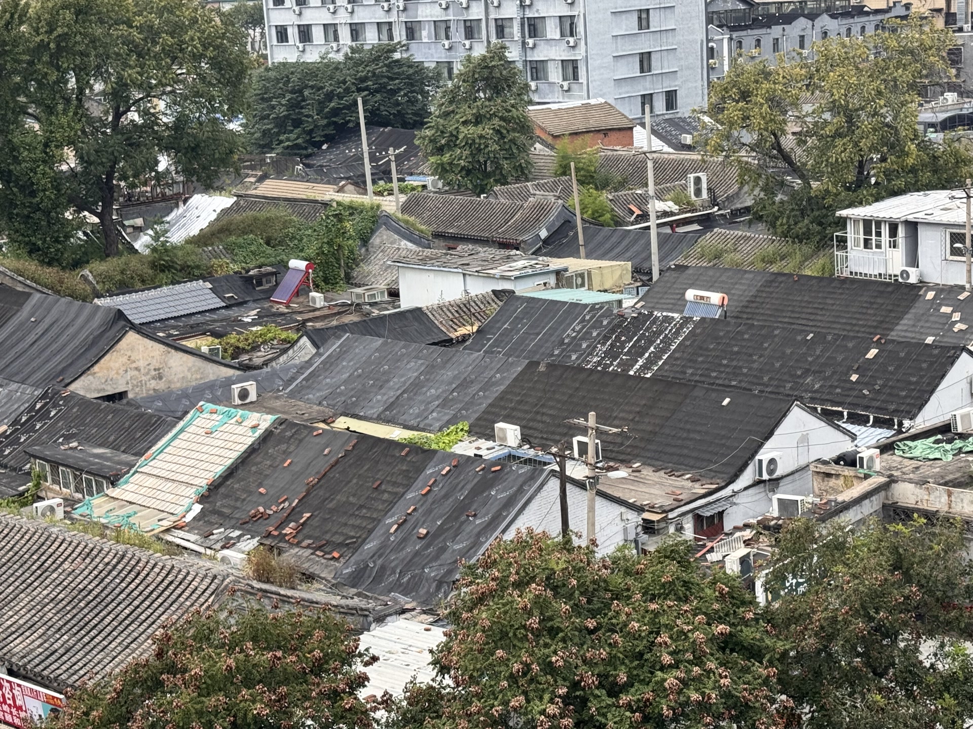 远望绿荫古建飞檐,近看胡同青砖黛瓦,北京“露台经济”正火热。在老城区登高远眺古都风貌,受到不少市民游客的追捧,而胡同院落的连片屋顶,为这幅画卷增添了古朴底色。美中不足的是,一些屋顶上的各种“补丁”格外煞风景,尤以裸露的各种防水材料最为显眼。