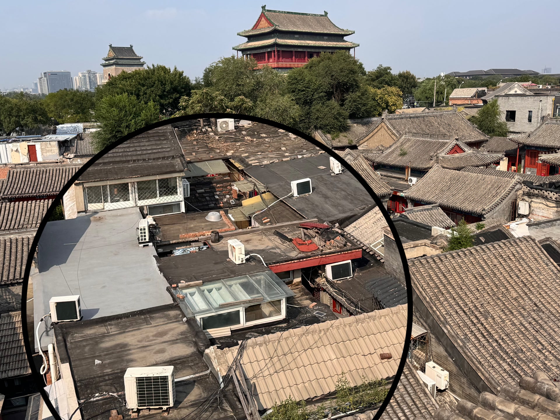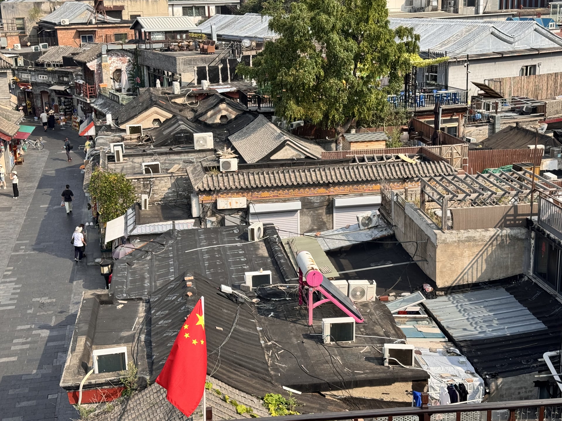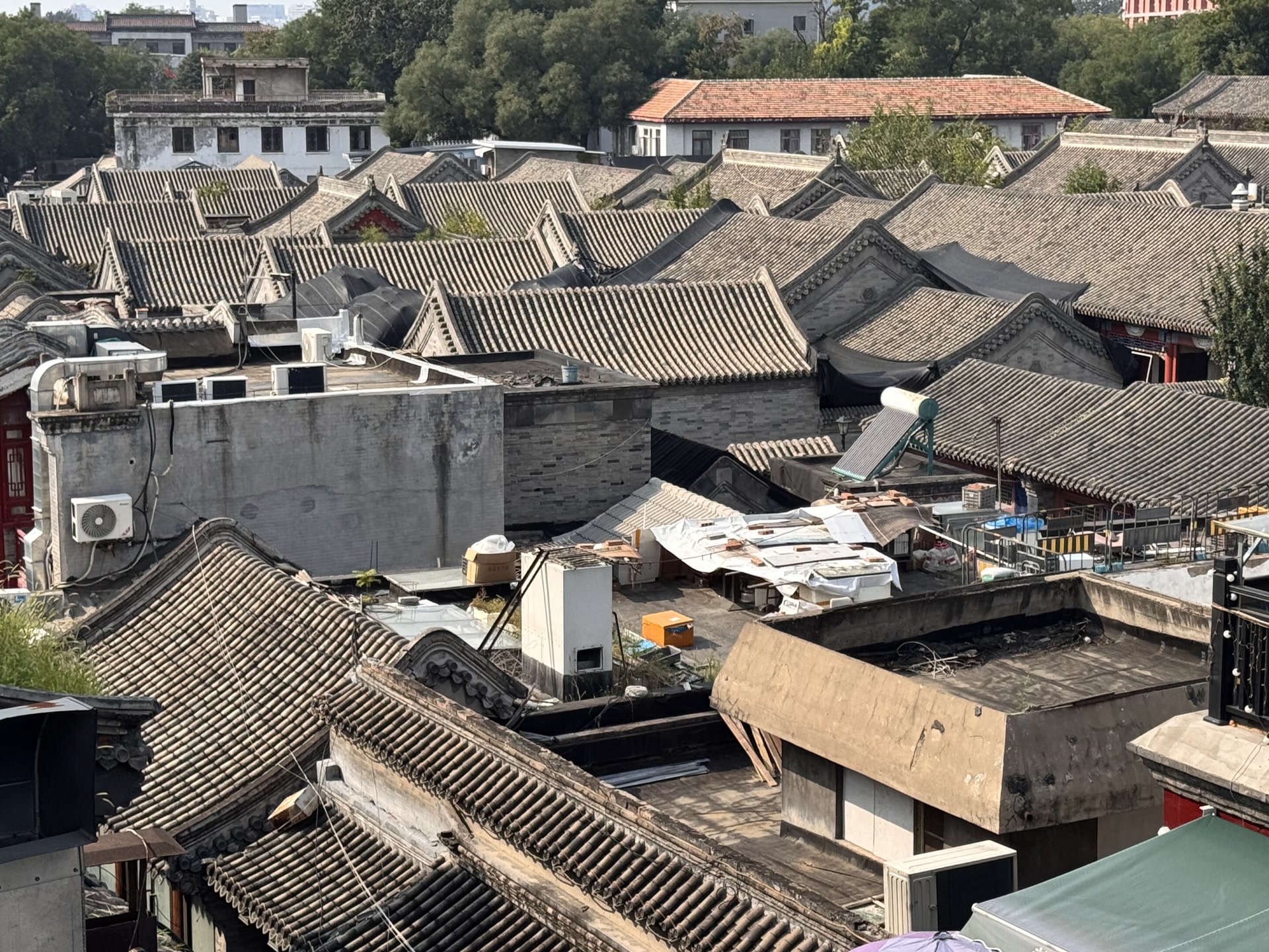 远望绿荫古建飞檐,近看胡同青砖黛瓦,北京“露台经济”正火热。在老城区登高远眺古都风貌,受到不少市民游客的追捧,而胡同院落的连片屋顶,为这幅画卷增添了古朴底色。美中不足的是,一些屋顶上的各种“补丁”格外煞风景,尤以裸露的各种防水材料最为显眼。