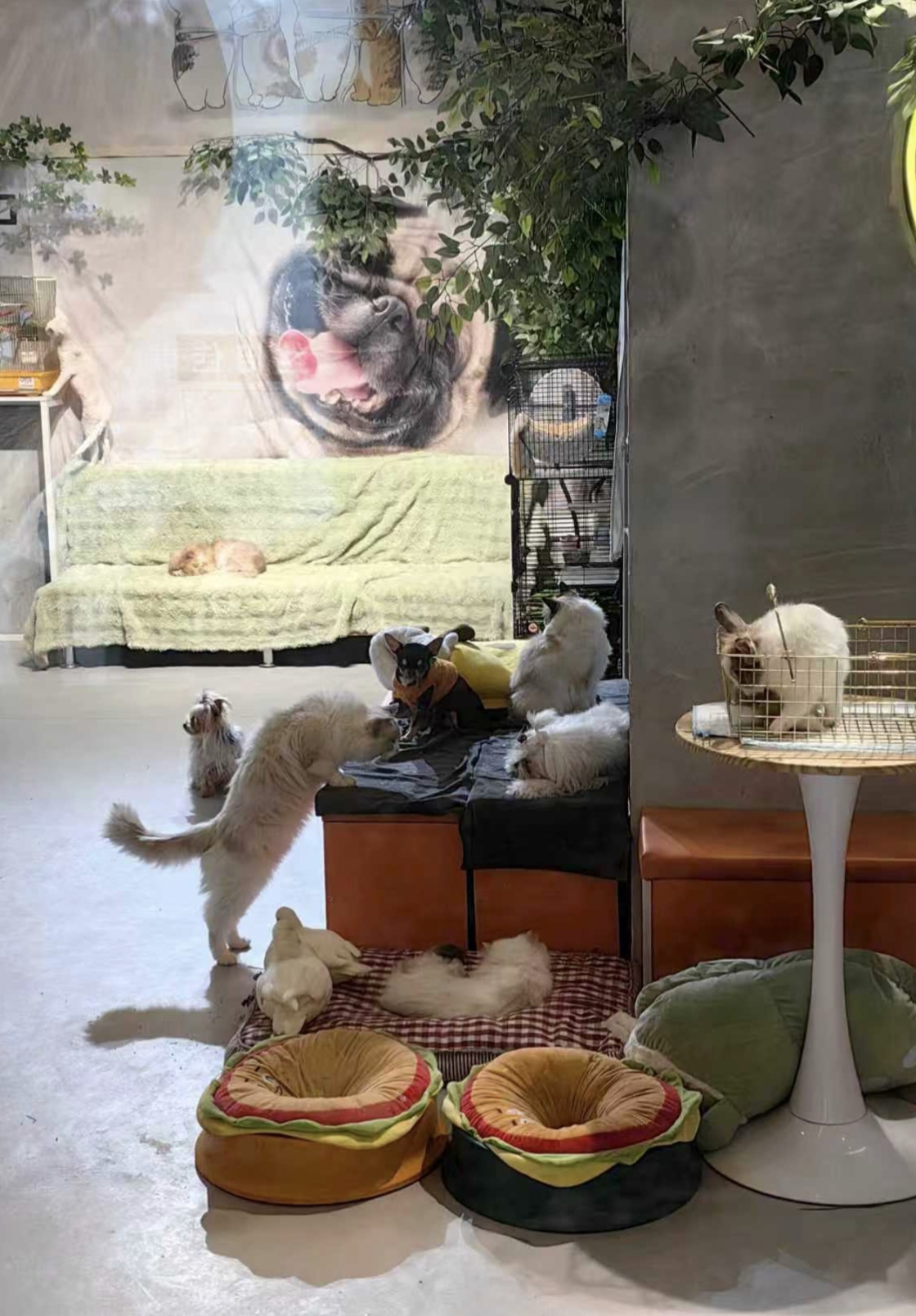 在西单一家萌宠乐园里,不仅有猫、狗等常见动物,还有兔子、羊驼,撸水豚更是店铺的“招牌”。记者看到,除了兔子被单独圈在笼里之外,猫、狗、羊驼和水豚都是混养状态。几位顾客正在店内撸宠,有的抱着猫卧在沙发里,有的和羊驼亲密合影。水豚和羊驼就趴在客人腿边悠闲地咀嚼着草料。店铺介绍中承诺所有宠物均已打过疫苗,均不携带狂犬病毒,但现场却未见检疫证明公示。