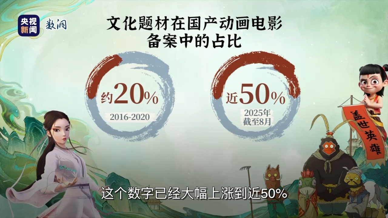 记者用代码爬取了近3万条电影备案立项数据,发现从2016年到2020年,文化题材在国产动画电影备案中的占比约20%;而2025年,截至8月,这个数字已经大幅上涨到近50%。将爆款电影的台词提取出来,记者发现这些电影火爆的背后,更大的变化是讲法不同了。文化IP真正“活起来”的那一刻,不是它站在舞台上讲道理,而是它坐到我们身边,讲了一句我们自己都没能说清楚的心里话。