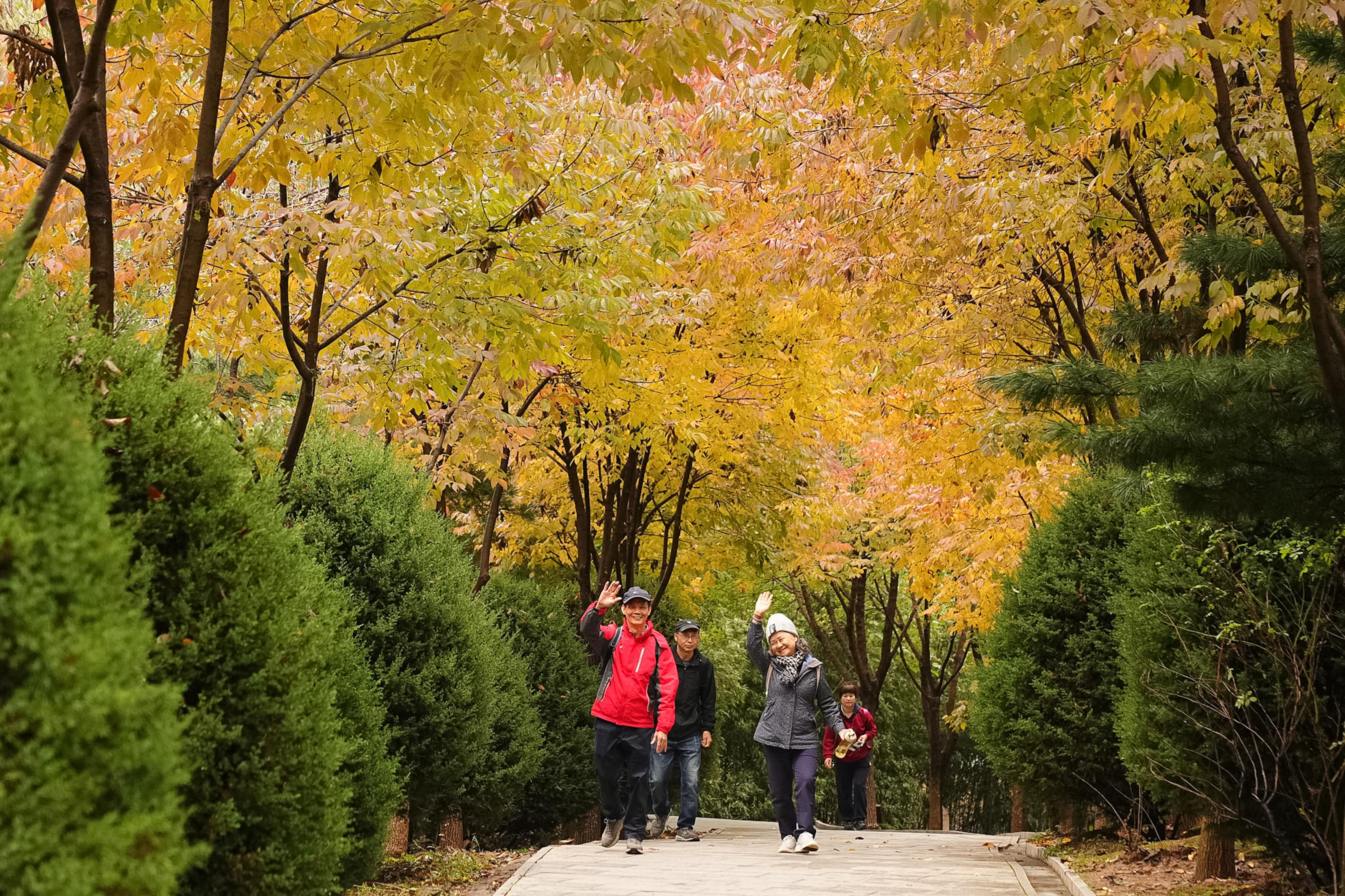 10月17日,2025年北宫彩叶季在这斑斓景致中如约启幕。约12℃的昼夜温差将促使园内彩叶树种逐步进入最佳观赏期。黄栌与元宝枫燃起胭脂般的深红,银杏铺就灿烂的金黄大道,水杉勾勒出温暖的焦糖色调,松柳依旧苍翠点缀其间。漫山遍野的色彩交织出一幅“黄叶红花秋色浓”的壮丽画卷。