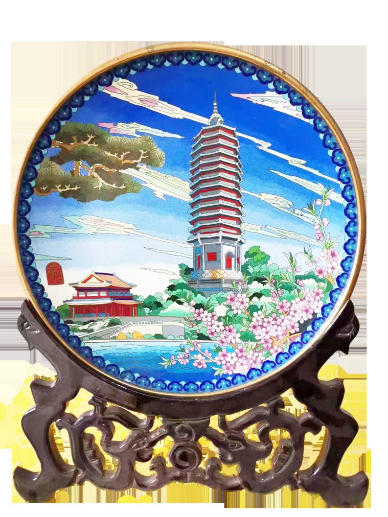 在北京大运河博物馆与北京城市图书馆之间的连廊中,您别错过景泰蓝作品展。景泰蓝又名“铜胎掐丝珐琅”,是我国宫廷艺术的杰出代表,也同样被誉为“燕京八绝”之一。因其在明朝景泰年间盛行,且使用的釉料多以蓝色为主,故得名景泰蓝。景泰蓝的制作工艺相当繁复,一件景泰蓝制品要经过108道工序,需历经制胎、掐丝、点蓝、烧蓝、磨光、镀金等多重考验,且全部手工精制而成。本届北京国际非遗周,来自马驹桥镇的景泰蓝技艺非遗传承人王春霞带来了多个地域风格鲜明、文化内涵深厚的景泰蓝工艺制品。